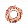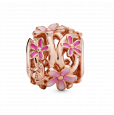 PANDORA pozlacený korálek "Otevřená růžová sedmikráska" zdobený růžovou glazurou a zirkony.