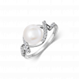 Stříbrný prsten s perlou zdobený zirkony čiré barvy.