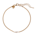 Stříbrný dámský náramek ALISIA se žlutým pozlacením doplňuje uprostřed drobná nepravidelná bílá perla, která jemně vynikne na hladkém řetízku.