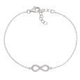 Dámský stříbrný náramek AMEN se symbolem nekonečna je osazen čirými zirkony a působí jemně, ale zároveň výrazně na zápěstí.