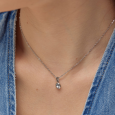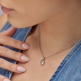 Zdobený je kulatým přívěskem s broušeným čirým křišťálem, který elegantně odráží světlo a dodává šperku jemný šarm. Náhrdelník je ideálním doplňkem pro ženy, které hledají kombinaci nadčasové elegance a moderního designu.