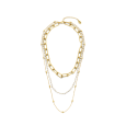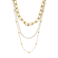 Dámský pozlacený ocelový náhrdelník CO88 s trojitým řazením - dvě vrstvy řetízků různého typu a třetí s perličkami o průměru 3 mm.