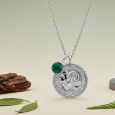 Stříbrný dámský náhrdelník ENGELSRUFER s čirými zirkony a zeleným malachitem zdobí medailon se znamením zvěrokruhu Kozoroh (22. 12. – 20. 1.).