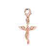 Stříbrný dámský přívěsek ENGELSRUFER s růžovým pozlacením má motiv anděla s jemně propracovanými křídly a praktické zapínání na karabinku.