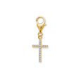 Stříbrný dámský přívěsek ENGELSRUFER se žlutým pozlacením s čirými zirkony má tvar křížku a praktické zapínání na karabinku.
