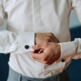 Pánské manžetové knoflíčky z oceli s karbonem.