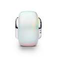 PANDORA stříbrný kulatý korálek je pokryt syntetickým opálem, který zachycuje jemné světelné odlesky v měnících se barvách.