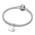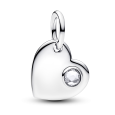 Stříbrný PANDORA korálek srdce s čirým zirkonem a druhou hladkou stranou, která nabízí prostor pro gravírování.