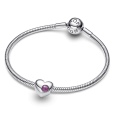 PANDORA gravírovatelný korálek Srdce s fialovým křišťálem