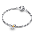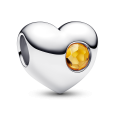 Stříbrný PANDORA korálek srdce s křišťálem medové barvy - barva často spojovaná s měsícem LISTOPAD. Druhá, hladká strana je vhodná ke gravírování.