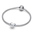 Stříbrný PANDORA korálek srdce s křišťálem modré barvy - barva často spojovaná s měsícem BŘEZEN. Druhá, hladká strana je vhodná ke gravírování.