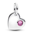PANDORA stříbrný korálek srdíčko zdobené růžovým křišťálem. Korálek je navržený tak, aby jedna strana ukazovala zářivý kámen a druhá zůstávala hladká pro gravírování.