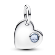 PANDORA stříbrný korálek srdíčko zdobené světle modrým křišťálem. Korálek je navržený tak, aby jedna strana ukazovala zářivý kámen a druhá zůstávala hladká pro gravírování.