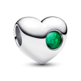 Stříbrná PANDORA korálek srdce s křišťálem "královské" zelené barvy - barva často spojována s měsícem KVĚTEN. Druhá, hladká strana je vhodná ke gravírování.