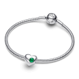 PANDORA gravírovatelný korálek Srdce se zeleným křišťálem