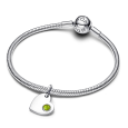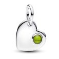 Stříbrný PANDORA korálek srdce se zeleným křišťálem. Z jedné strany ji zdobí kulatý fazetovaný křišťál v jarním zeleném odstínu a na druhé straně nabízí prostor pro gravírování.