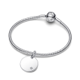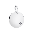 PANDORA stříbrný kulatý přívěsek vhodný ke gravírování, zdobený laboratorním diamantem 0,0012 ct GI VS+.