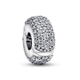 PANDORA stříbrný klipový korálek s integrovaným silikonovým úchytem zdobený zirkony čiré barvy.