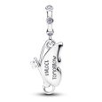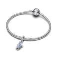 PANDORA stříbrný korálek ve tvaru klíče s motýlími křídly, zdobený bílou a třpytivou modrou glazurou a sedmi zářivými zirkony. Na jedné straně je gravírování „UNLOCK TOMORROW“ (Odemkni zítřek).