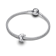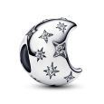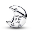 PANDORA stříbrný přívěsek s motivem měsíce, zdobený 16 hvězdicovitě vsazenými čirými zirkony a jemným gravírováním "THE SKY IS THE LIMIT" (Obloha je hranice).