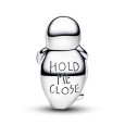 PANDORA stříbrný korálek zobrazuje tuleně, který se objímá s ledovcem z měsíčního skla. Oči tuleně jsou vsazeny z černých křišťálů a korálek nese gravírování „HOLD ME CLOSE“ (Drž mě blízko).