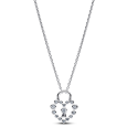 Dámský stříbrný náhrdelník PANDORA Moments s přívěskem v podobě srdíčkového zámku, zdobeného čirými zirkony osazenými v hladkém lůžku. Kameny různých velikostí vytvářejí tvar srdce, přičemž středový zámek je zvýrazněn samostatným zirkonem. Jemný řetízek klasického typu doplňuje vyvážený a elegantní design šperku.