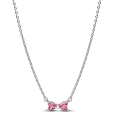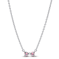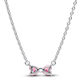 PANDORA stříbrný náhrdelník se zirkonovou mašličkou růžové barvy.