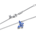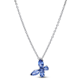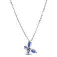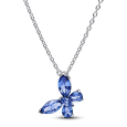 PANDORA stříbrný náhrdelník s modrými křišťály ve tvaru motýla a čirým zirkonem při zapínání.