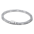 Elegantní náramek v řetízkovém vzoru zdobí oválné články se třpytivými zirkony vsazenými v pravidelných rozestupech. Kombinace pevného kovu a zářivých detailů vytváří dojem síly, luxusu a dokonalé rovnováhy. Náramek, který zvýrazní osobnost i styl s nenucenou elegancí.