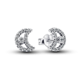 PANDORA stříbrné náušnice s otevřeným půlměsícem a čirými zirkony.