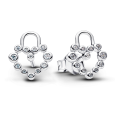 Dámské stříbrné napichovací náušnice PANDORA s motivem srdíčkového zámku, vytvořeného z čirých zirkonů různých velikostí. Precizně osazené kameny formují jemný tvar srdce a dodávají náušnicím elegantní lesk, přičemž celkový design působí vyváženě a harmonicky. Zapínání na puzetu zajišťuje pohodlné a stabilní nošení.