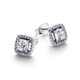 PANDORA stříbrné náušnice se čtvercovými čirými zirkony obklopenými drobnými třpytivými kamínky.