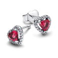 Dámské stříbrné napichovací náušnice PANDORA Timeless zdobené dvěma křišťály ve tvaru srdce v sytém červeném odstínu. Srdíčka jsou osazena v mírně vyvýšené středové části. Okolí srdíčka je doplněno pavé z drobných čirých zirkonů, které dodávají šperku jemný lesk a elegantní hloubku.