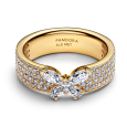 PANDORA pozlacený prsten s motýlem, kterého zdobení čiré zirkony.