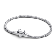 PANDORA stříbrný fazetovaný náramek z kolekce Moments se srdíčkovým zapínáním. Náramek přináší inovativní zpracování klasického designu.