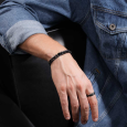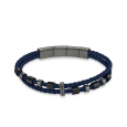 POLICE pánský modrý kožený náramek Freeway s tmavými ocelovými částmi.