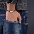 POLICE pánský modrý kožený náramek Intersect s ocelovými částmi.