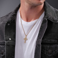 POLICE pánský pozlacený ocelový náhrdelník Spirit s křížkem.