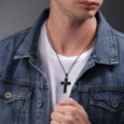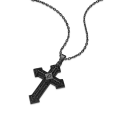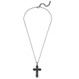 POLICE pánský černý ocelový náhrdelník Stoneset s křížkem s křišťály černé barvy.
