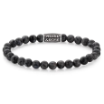 Pánský náramek REBEL & ROSE z korálků z kamene larvikit v tmavě šedém provedení s ocelovým logem značky v elastickém provedení.
