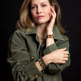 Hřejivé hnědé tóny korálků vytvářejí přirozený, ale zároveň dynamický doplněk, který se hodí k dámskému stylu. Pozlacené detaily v kombinaci s elastickým provedením umožňují snadné nasazení a celodenní komfort nošení.