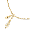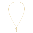 Dámský pozlacený ocelový náhrdelník ROSEFIELD má elegantní design doplněný drobným pavé prvkem osazeným čirými zirkony. Ze středového detailu směřuje jemné prodloužení zakončené malým hladkým prvkem, což vytváří vertikální efekt zvýrazňující linii dekoltu.