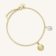 Dámský ocelový náramek ROSEFIELD s přívěskem perly a mušle pozlacený žlutým zlatem.