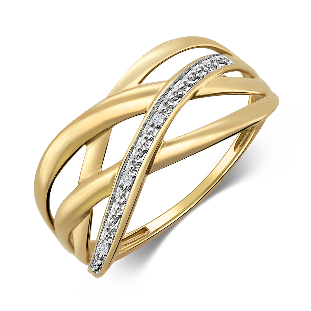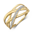 SOFIA dámský prsten ze 14karátového žlutého zlata v propleteném designu zdobený dvěma diamanty působí elegantně a žensky.