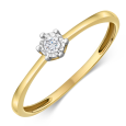 SOFIA dámský zásnubní prsten z 14karátového žlutého zlata se středovým diamantem 0,05 ct. H-I1 v iluziové obrubě z bílého zlata působí zářivě a elegantně.