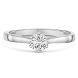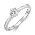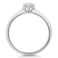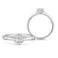 Elegantní prsten z bílého zlata zdobí centrální diamant o hmotnosti 0,38 ct, jehož kvalita se pohybuje v rozpětí barvy E–H a čistoty SI1–I1.