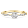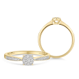 SOFIA dámský zásnubní prsten z 14karátového žlutého zlata se středovým diamantem v iluziové obrubě působí zářivě a romanticky.