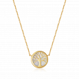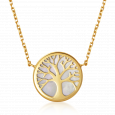 Zlatý dámský náhrdelník se stromem života s perleťovým podkladem.