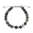Ručně pletený náramek z kvalitních polodrahokamů, zdobený jemnými stříbrnými detaily.