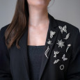 Třpytivé kamínky tvoří paprsky světla, které odrážejí energii a optimismus. Brož je výrazným doplňkem, který dodá outfitu jas a ženský šarm.